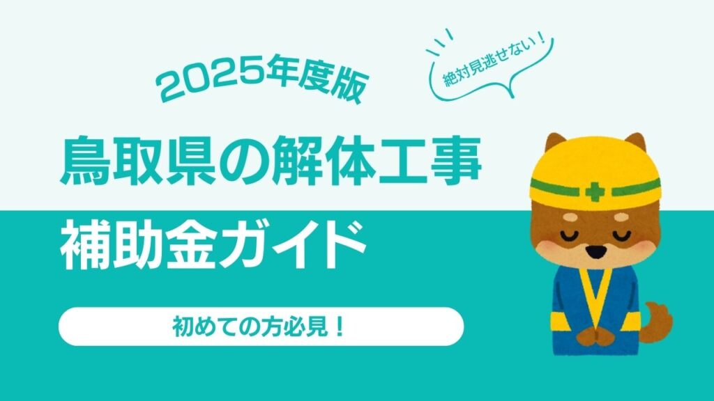 老朽化した木造住宅や空き家の解体は、まとまった費用が必要となるため、「少しでも安くしたい」と考えるのは当然です。特に鳥取県は、空き家対策に力を入れており、市町村ごとに解体費用を補助・助成する制度を設けています。 しかし、補助金制度は名称や... -