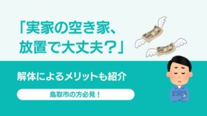 鳥取市では「老朽危険空き家等除却支援事業」として、特定の条件を満たす建物の解体に補助金が出る制度があります。例えばもうすでに締め切ってしまいましたが、令和7年度の補助内容は除却工事費の1/2(上限60万円)残置物処分費の1/2(上限20万円)でした。