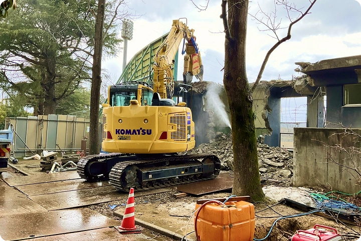 鳥取市 美保球場 スコアボード解体 2025 11/21 2025.11.162025.11.21 施工詳細鳥取市内 美保球場スコアボードを解体しました。2.3階がスコアボード鉄骨造で、1階がRC造で、基礎コンも頑丈。アタッチメントに、sakato SDS150を使用、無事に完工。 鉄筋コンクリート4階解体工事 関連記事 鉄骨平屋建て屋内運動場解体 2025.11.21 コンクリート塊現場にて再資源化 2025.11.21 鉄骨造平屋建て解体工事 2025.11.21 鉄筋コンクリート共同住宅解体(八頭町) 2025.11.21 鉄骨2階建て公民館解体工事 2025.11.21 木造2階建て店舗兼住宅解体工事 2025.11.21 鉄骨3階建てマンション解体工事 2025.11.21 鉄筋コンクリート2階建解体工事 2025.11.21