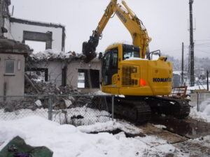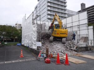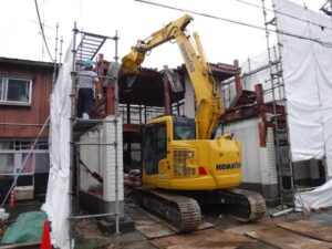 施工詳細梁の鉄骨が、H700あったが、SRC圧砕機で向かった現場です。ガス切断不要でした。